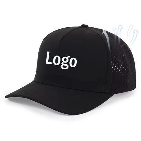 Custom 6Panel Polyester Rubber Patch Curved Brim Laser Cut Hole Perforated Waterproof Lightweight Performance Snapback
