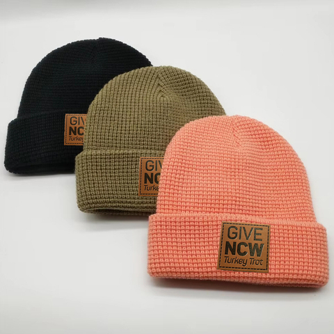 Unisex merinos yünü Waffle Skullies bere kap özel yüksek kalite kış şapka balıkçı desen düz boyalı deri yama ortak