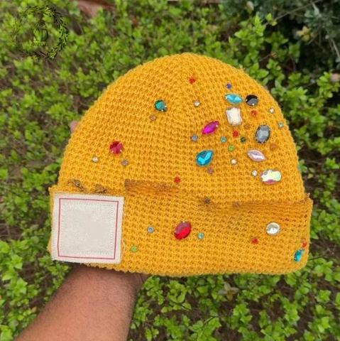 Yeni Trendy Rhinestone tavşan kürk karışımı akrilik elmas örme taklidi-bere şapka